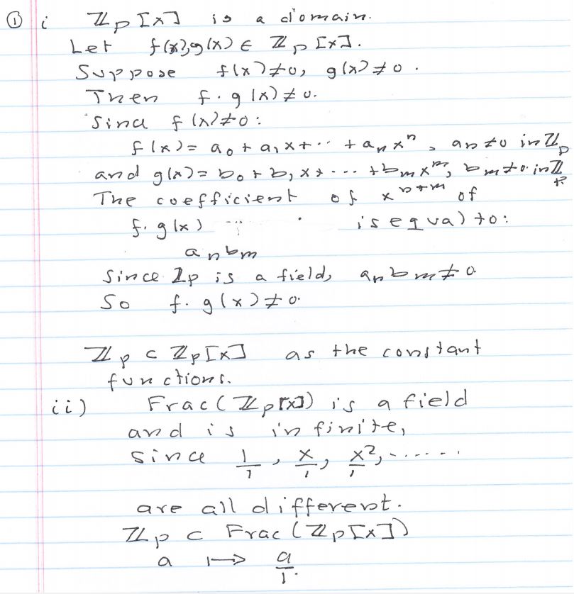1. i) Show that Zp[x] is an infinite domain containing Zp as a subf...