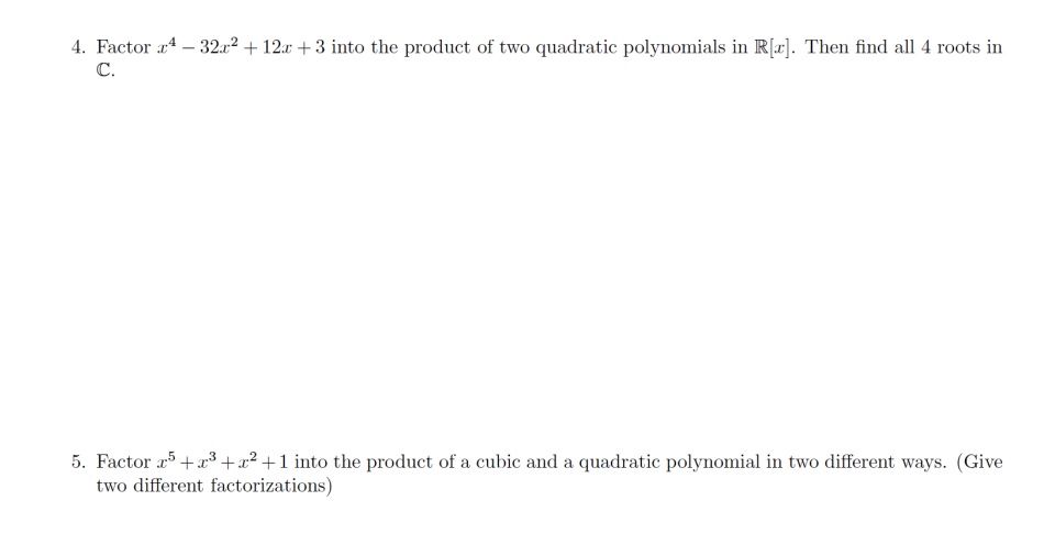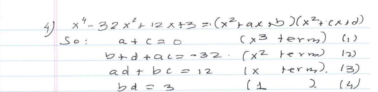 4. Factor x4 - 32.2² + 12x + 3 into the product of two quadratic...