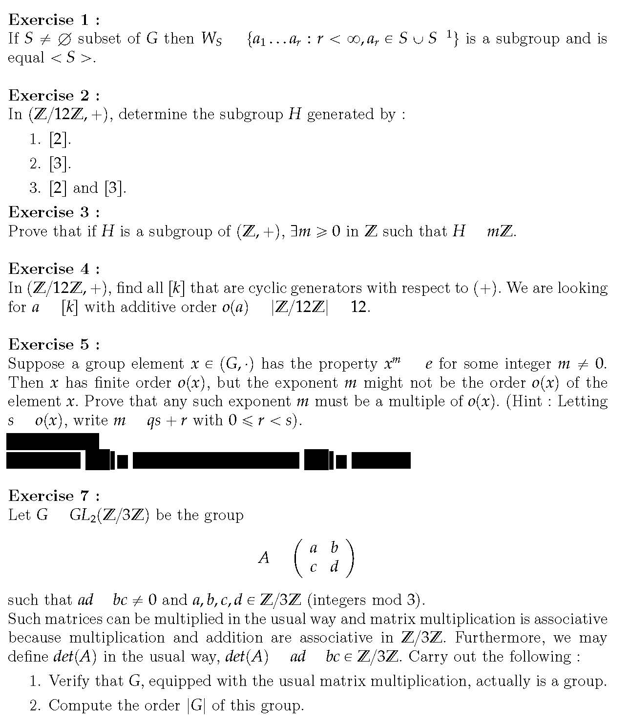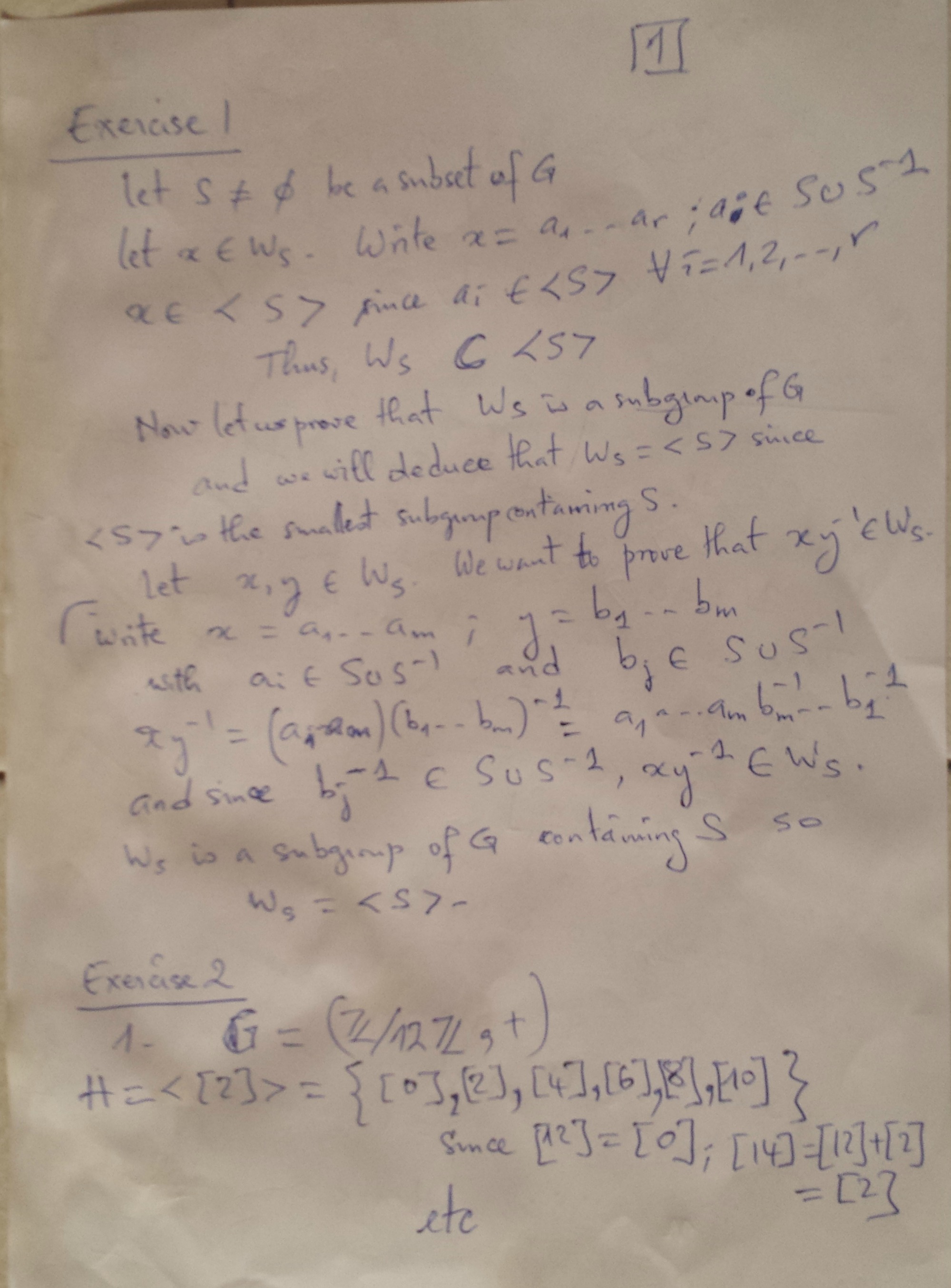 Exercise 1 : If S H subset of G then WS ta1 : : : ar : r  8;...