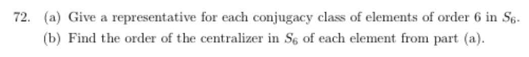 72. (a) Give a representative for each conjugacy class of elements...