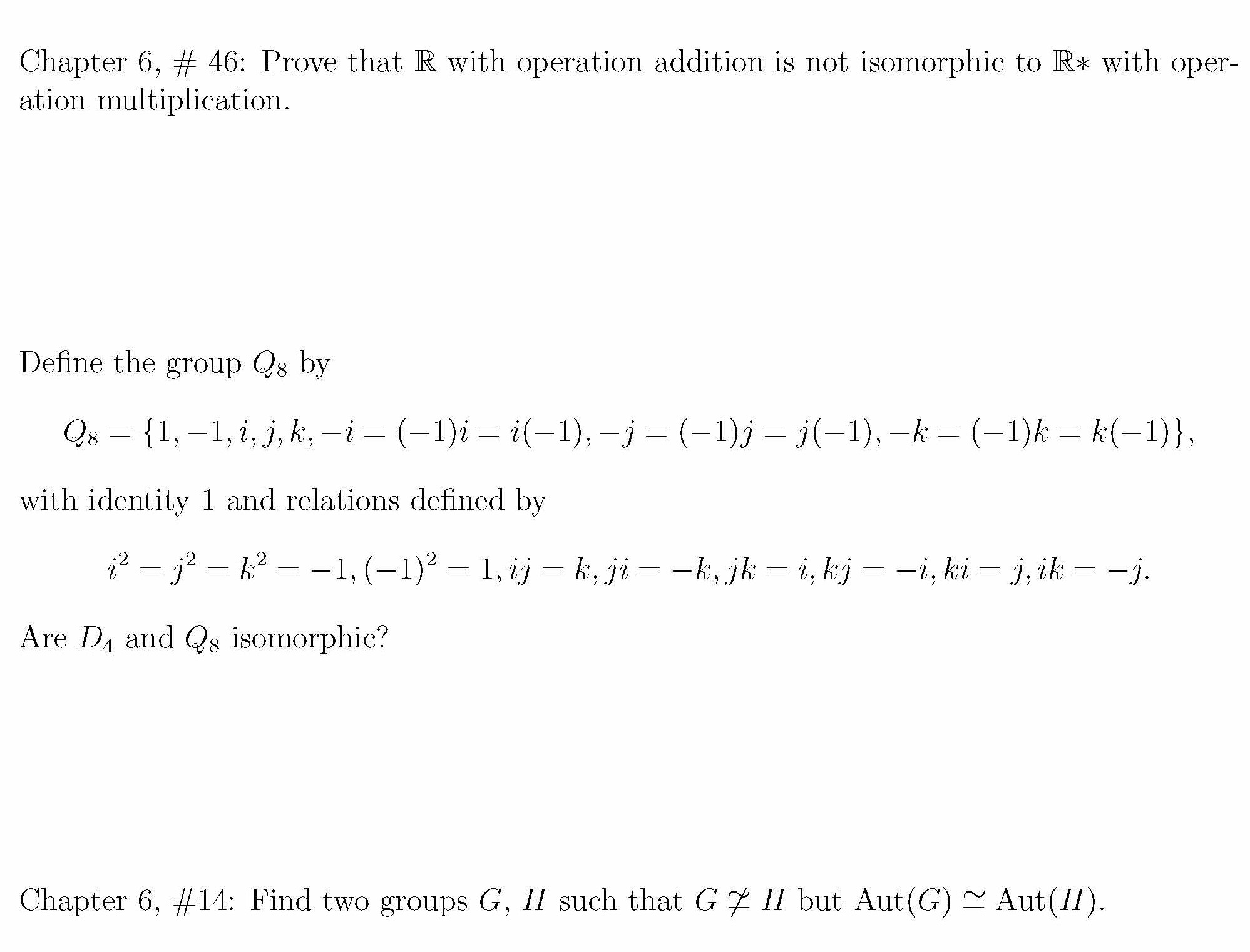 Chapter 6. # 46: Prove that R with operation addition is not isomor...