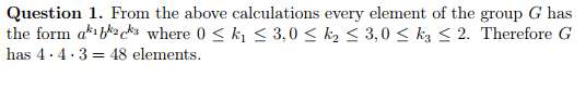 From Chapter 26: Generators and Relations Let G = { a, b, c | aâ´...
