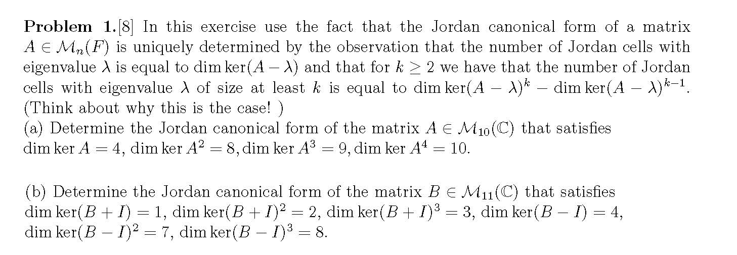 Problem 1.[8] In this exercise use the fact that the Jordan canonic...