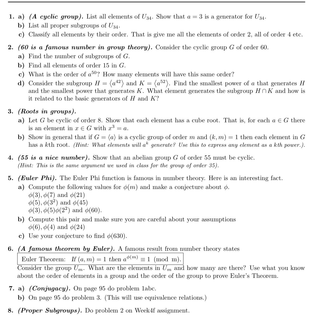 1. a) (A cyclic group). List all elements of U34. Show that a = 3 i...