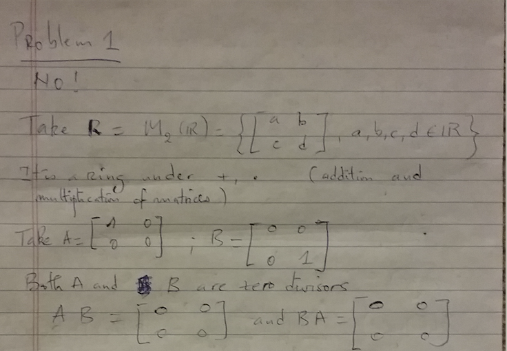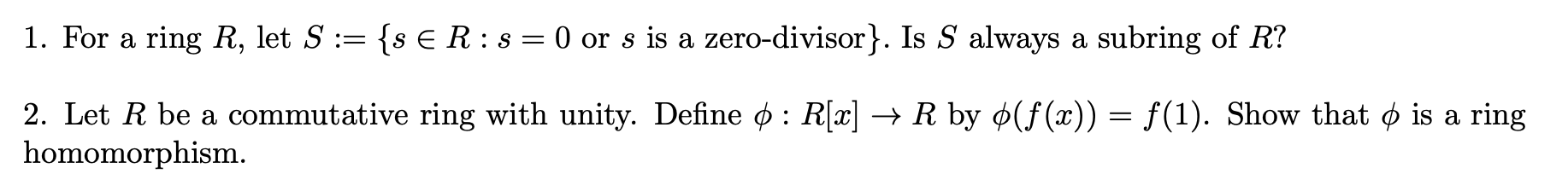 1. For a ring R, let S {s E R : s = 0 or : S is a zero-divisor}. Is...
