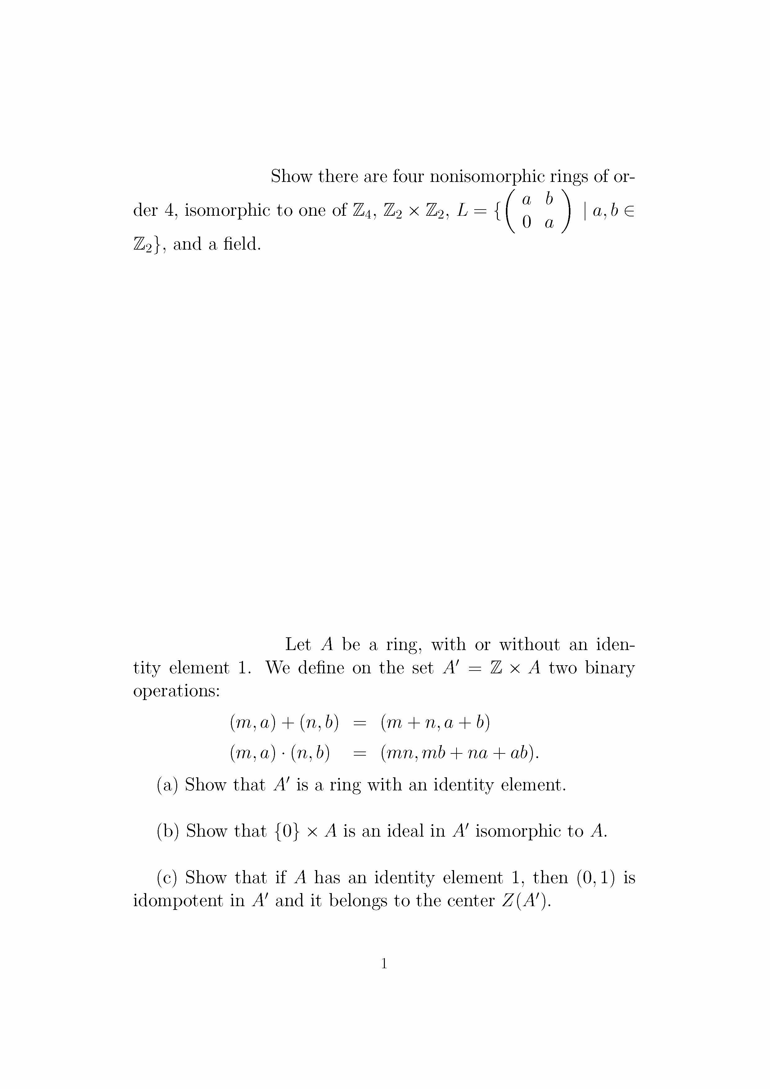 Show there are four nonisomorphic rings of or- ( a 0 a ) b der 4...