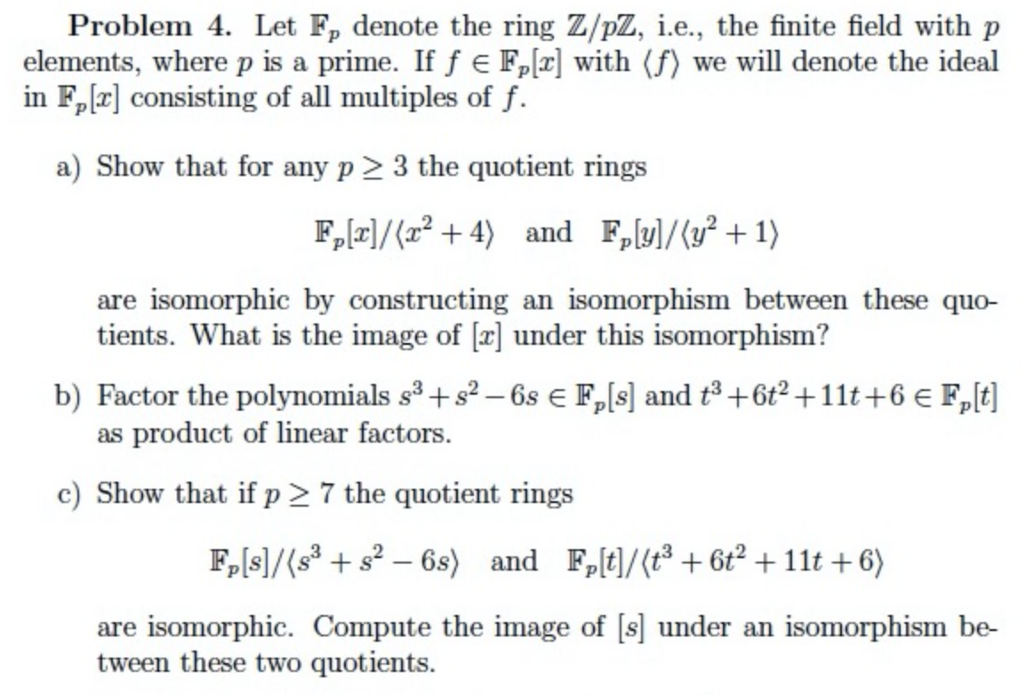 Problem 4. Let Fp denote the ring Z/pZ, i.e., the finite field with...