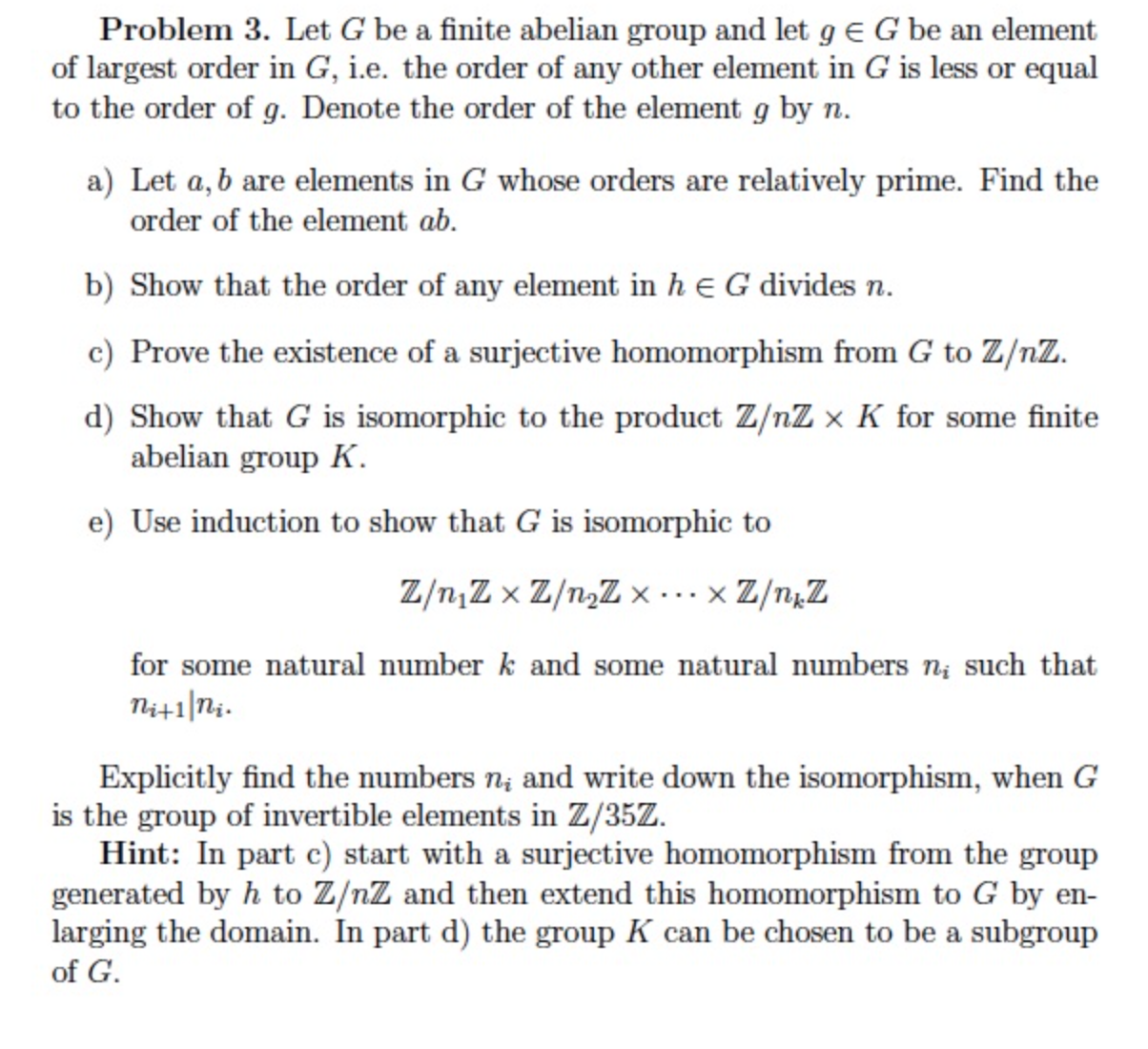 Problem 3. Let G be a finite abelian group and let 9 € G be a...
