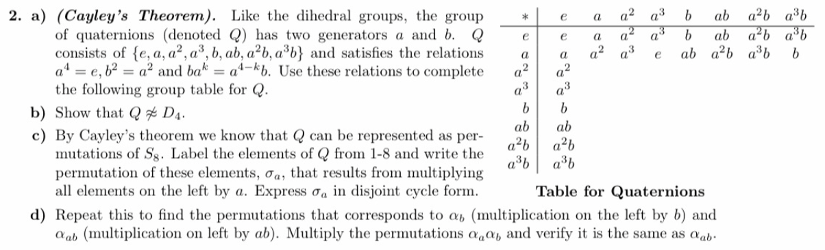 2. a) (Cayley's Theorem). Like the dihedral groups, the group * ...