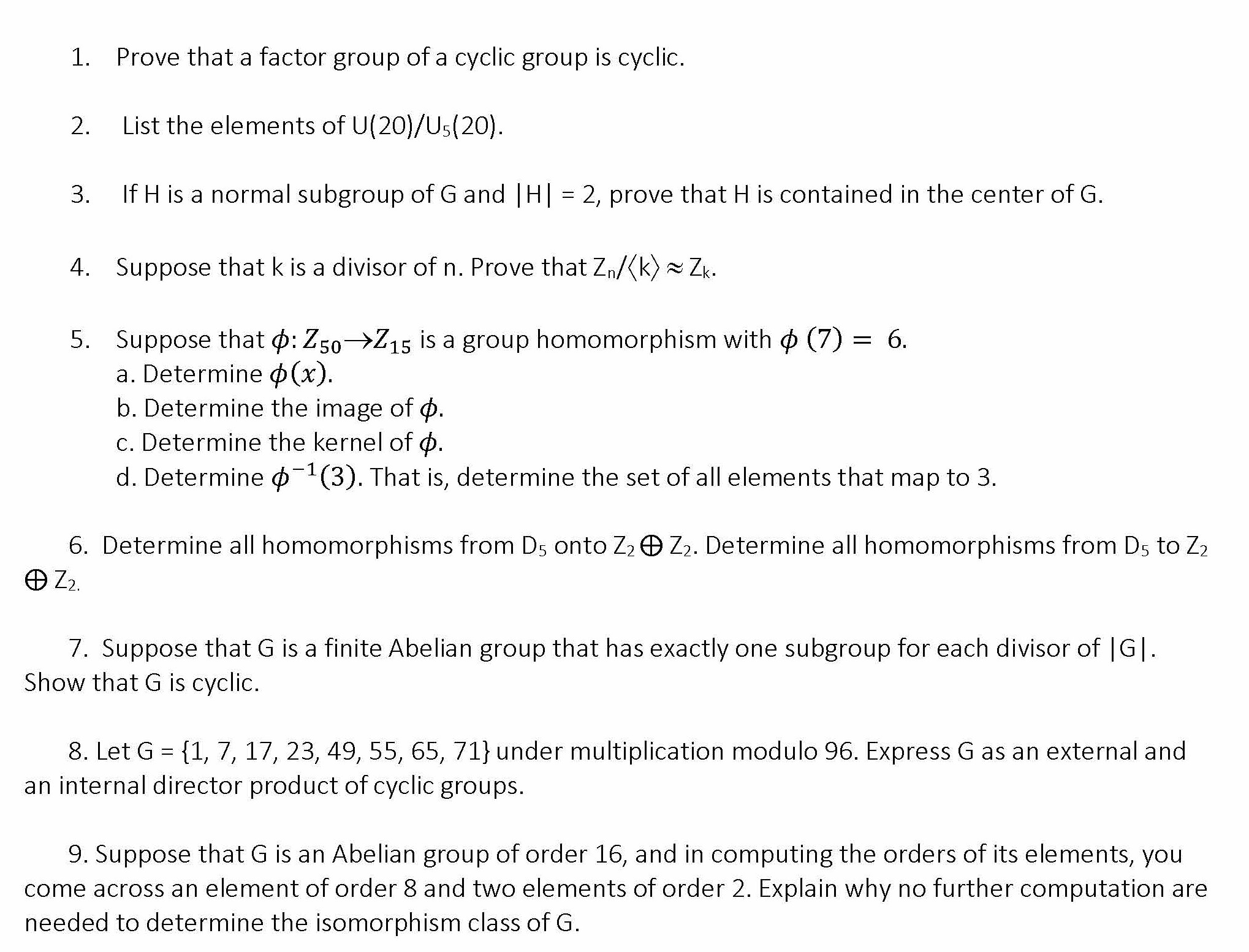 1. Prove that a factor group of a cyclic group is cyclic. 2. List...