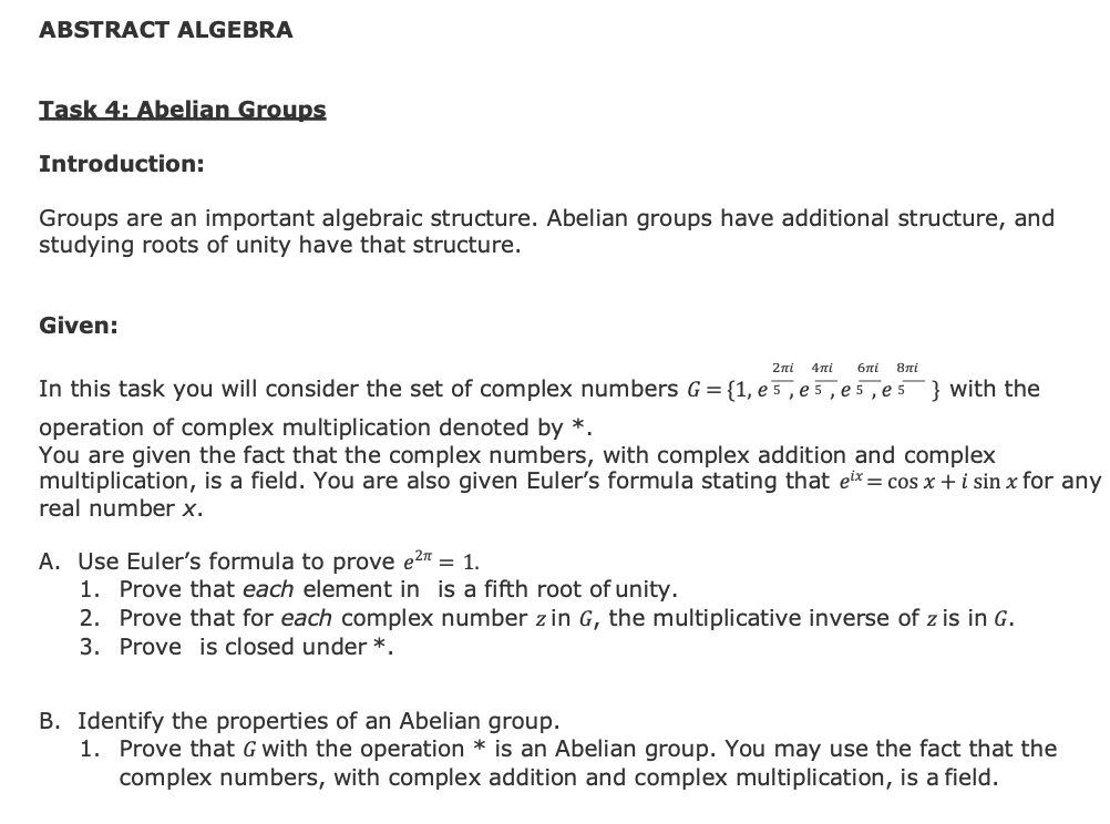 ABSTRACT ALGEBRA Task 4: Abelian Groups Introduction: Groups are...