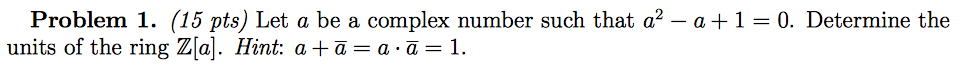 Problem 1. (15 pts) Let a be a complex number such that a2-a+1 - =...