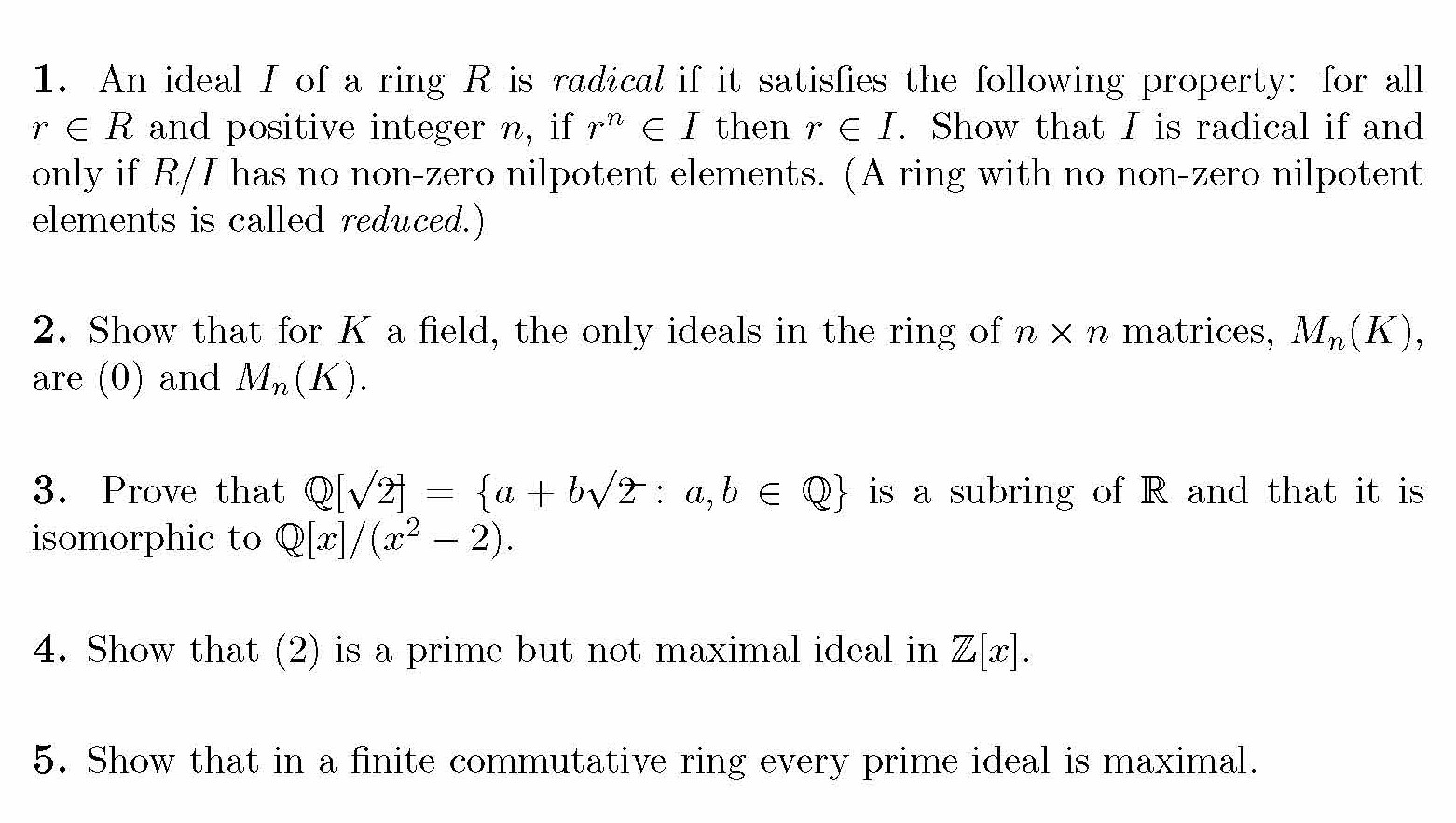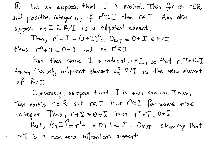 1. An ideal / of a ring R is radical if it satisfies the following...