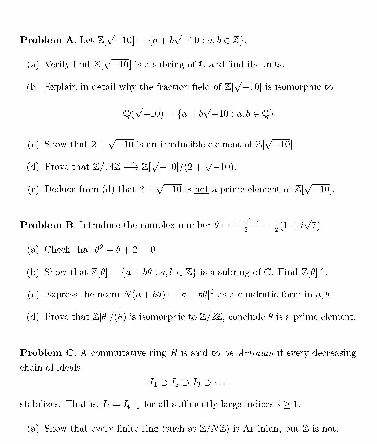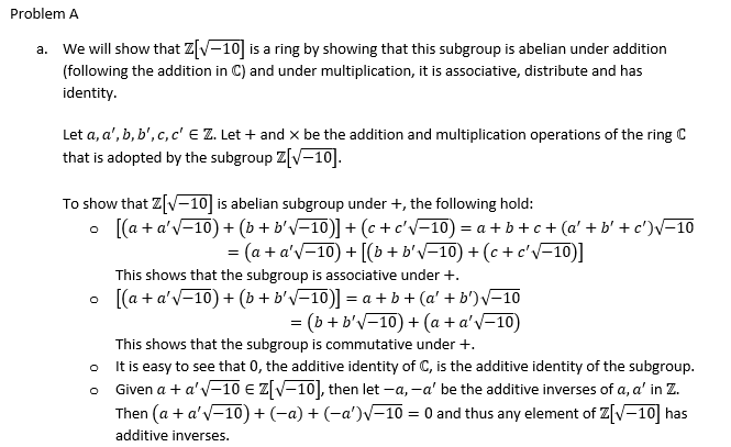 Problem A. Let Z|V-10| = (a) Verify that Z|V-10| is a subring of c...