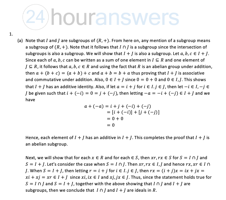 1. Suppose R is a ring and and I and J are ideals of R. (a) Prove ...