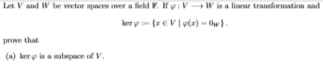 Let V and W be vector spaces over a field F. If 4 : V W is a linea...