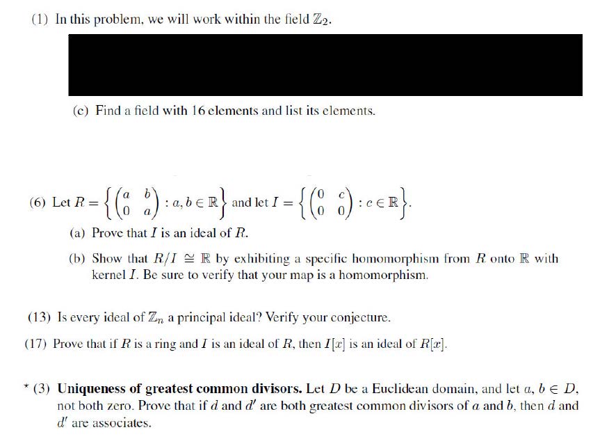 (1) In this problem, we will work within the field Z2. (c) Find a ...