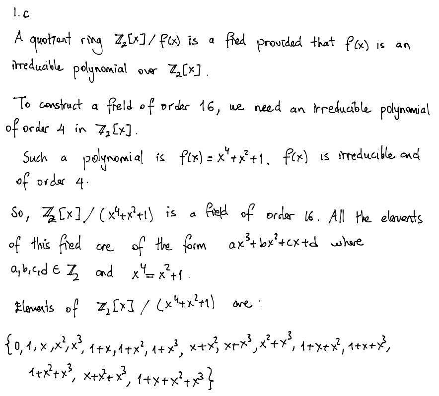 (1) In this problem, we will work within the field Z2. (c) Find a...