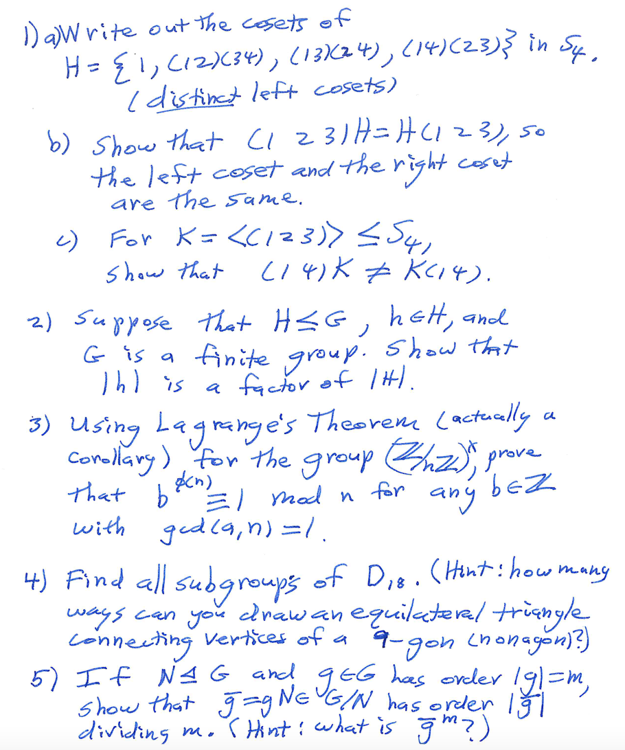 ) ) Write out the cosets of H = {1, (12)(34) , (13)(24) ) (14)(23)...