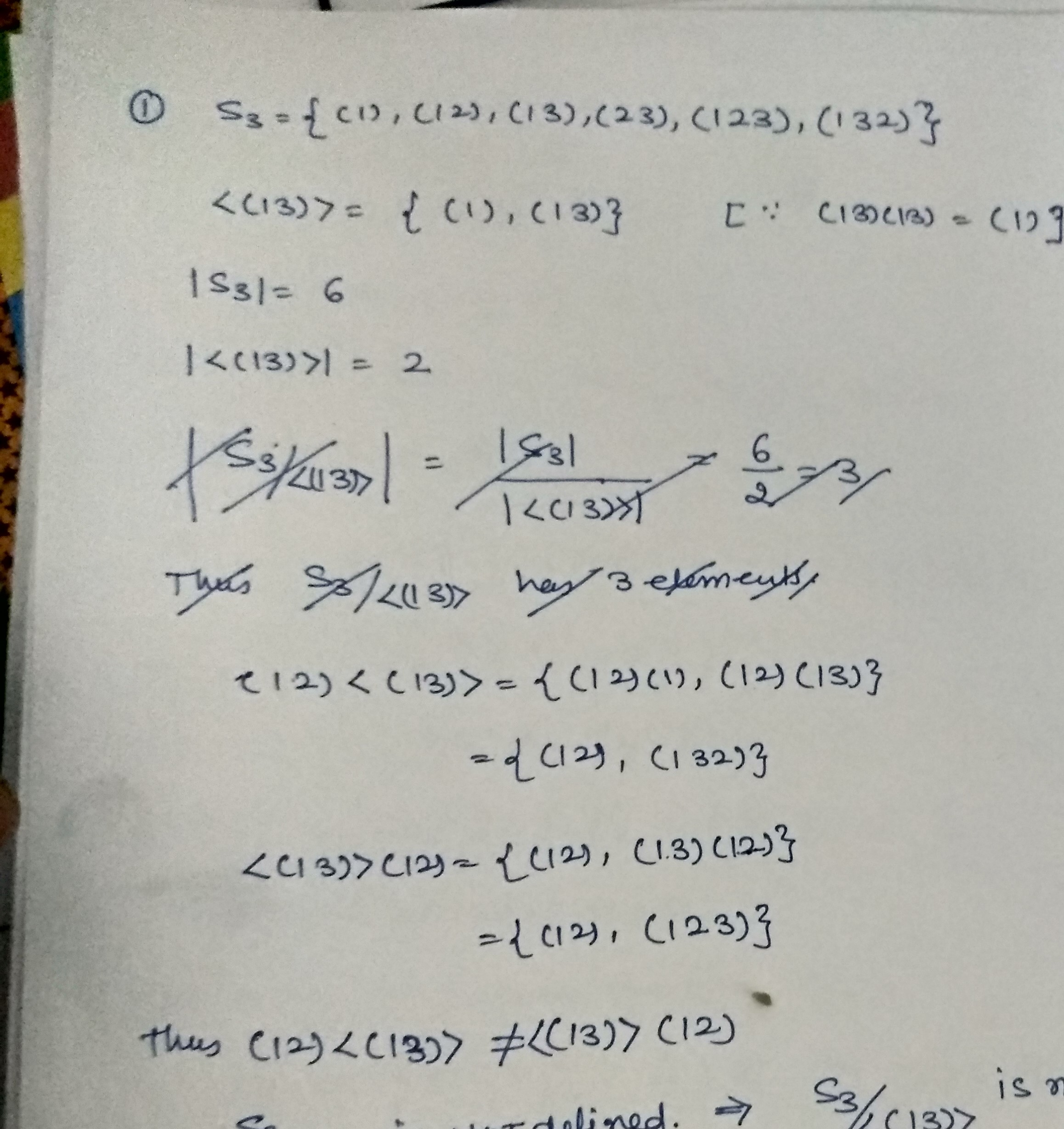 1. Consider the group S3 and the subgroup ((13)). Is S3/((13)) a gr...