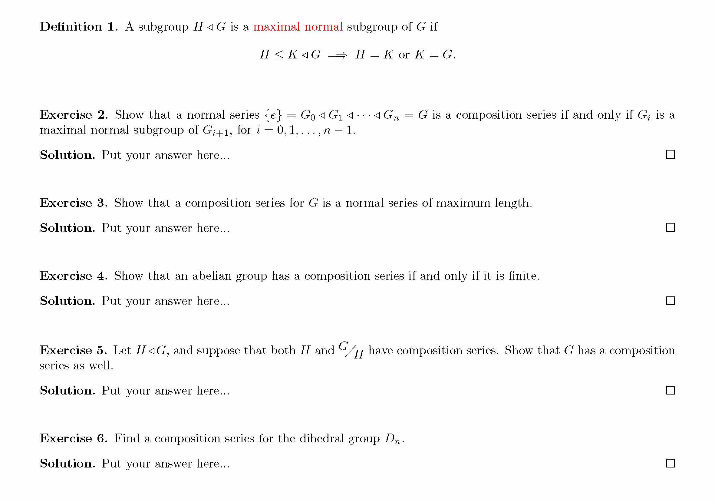 Definition 1. A subgroup H < G is a maximal normal subgroup of G...