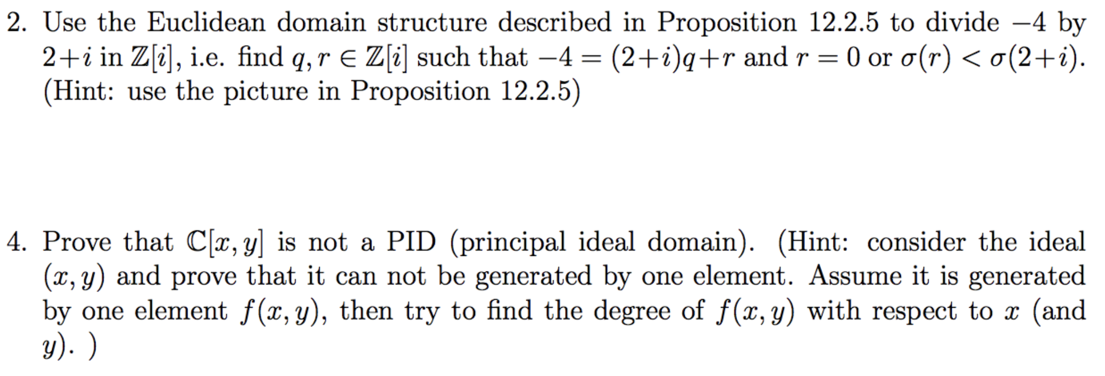 2. Use the Euclidean domain structure described in Proposition 12.2...