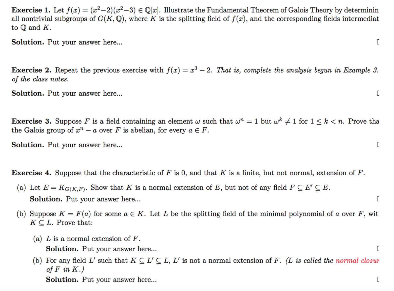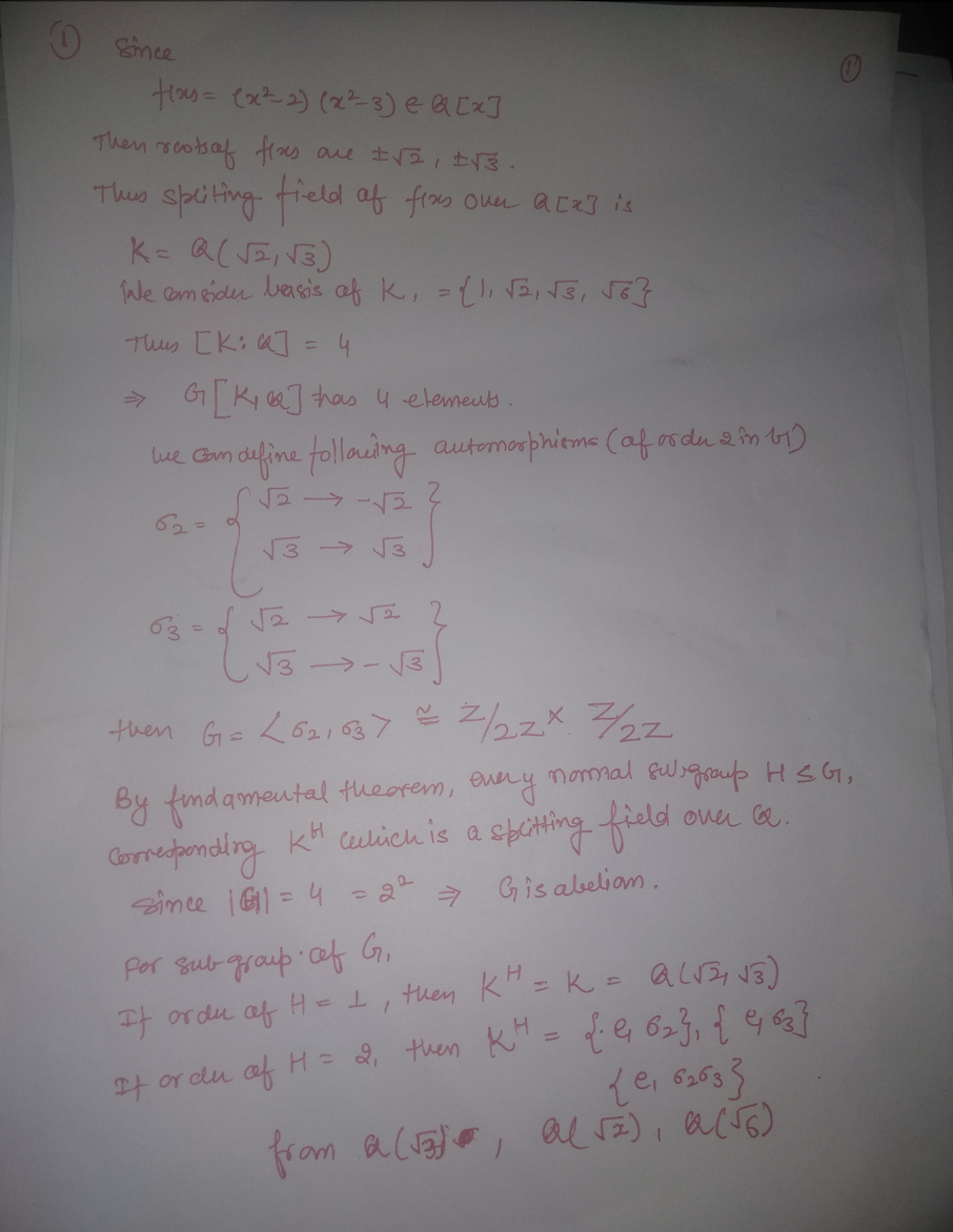 Exercise 1. Let f (x) = (x²-2)(x²-3) E Q[x]. Illustrate the Funda...