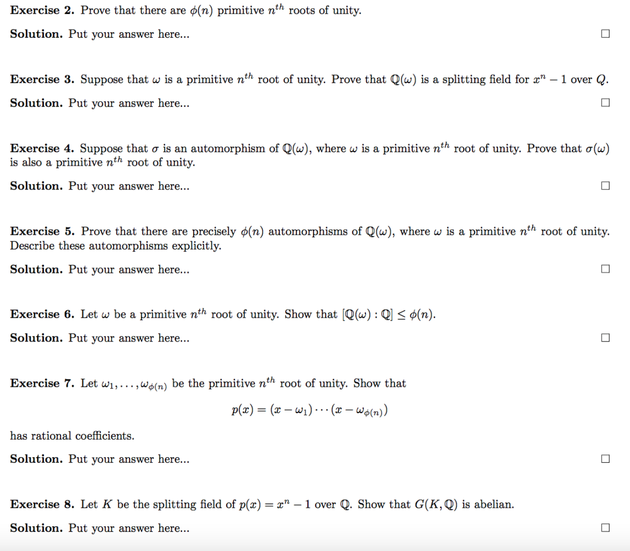 Exercise 2. Prove that there are o(n) primitive nth roots of unity....