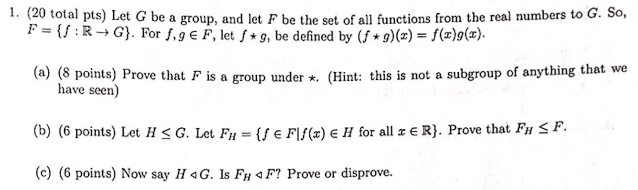 1. (20 total pts) Let G be a group, and let F be the set of all fu...