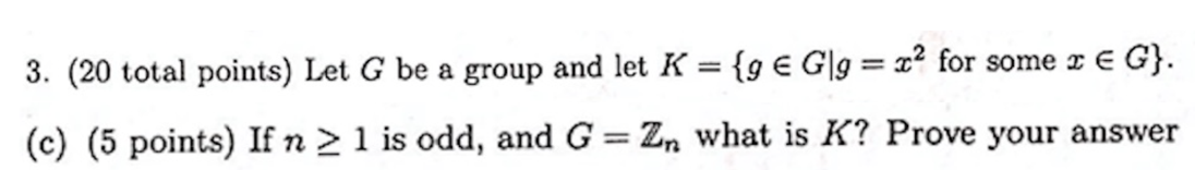 3. (20 total points) Let G be a group and let K = {9 € GIg =x² f...