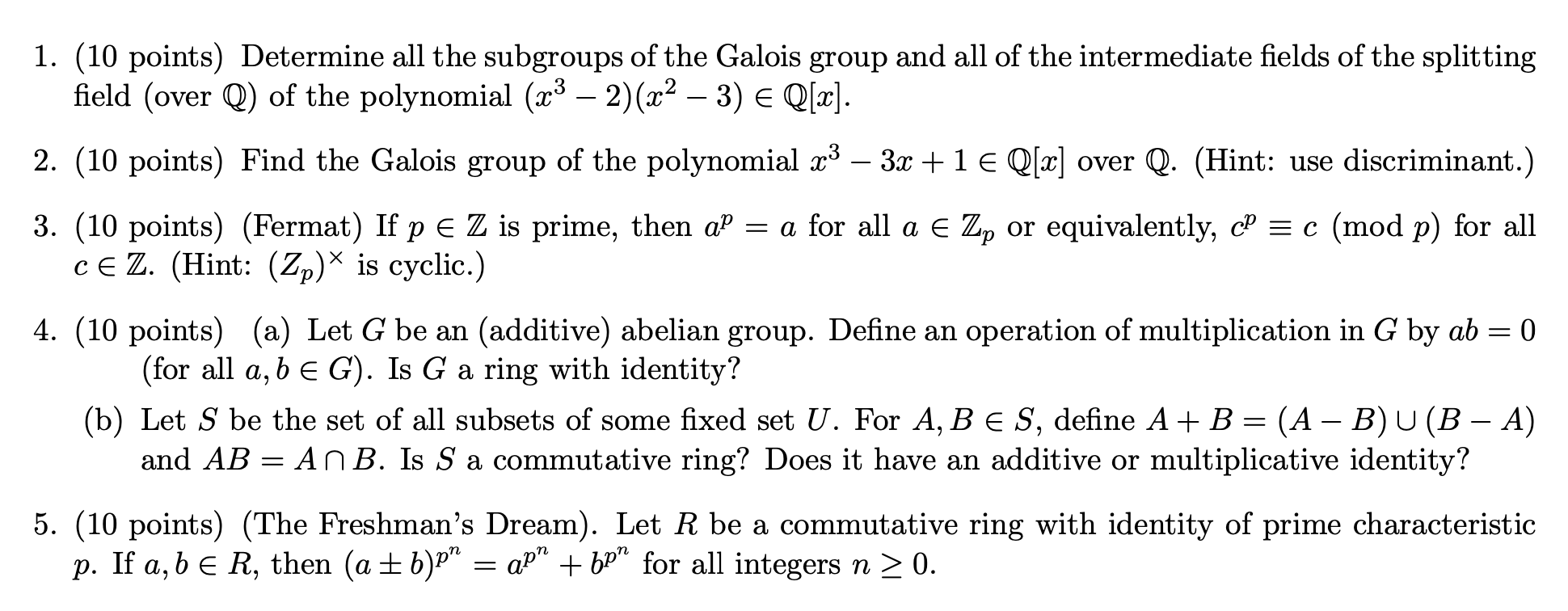 1. (10 points) Determine all the subgroups of the Galois group and ...