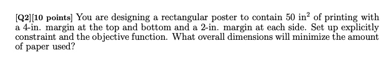 [Q2][10 points] You are designing a rectangular poster to contain 5...