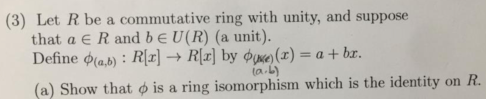 (3) Let R be a commutative ring with unity, and suppose that a €...