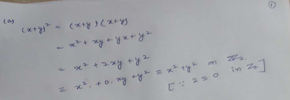 7 a Show that (x+y) 2 = X 2 + Y 2 for all X.Y in 22 Hint: Bino...