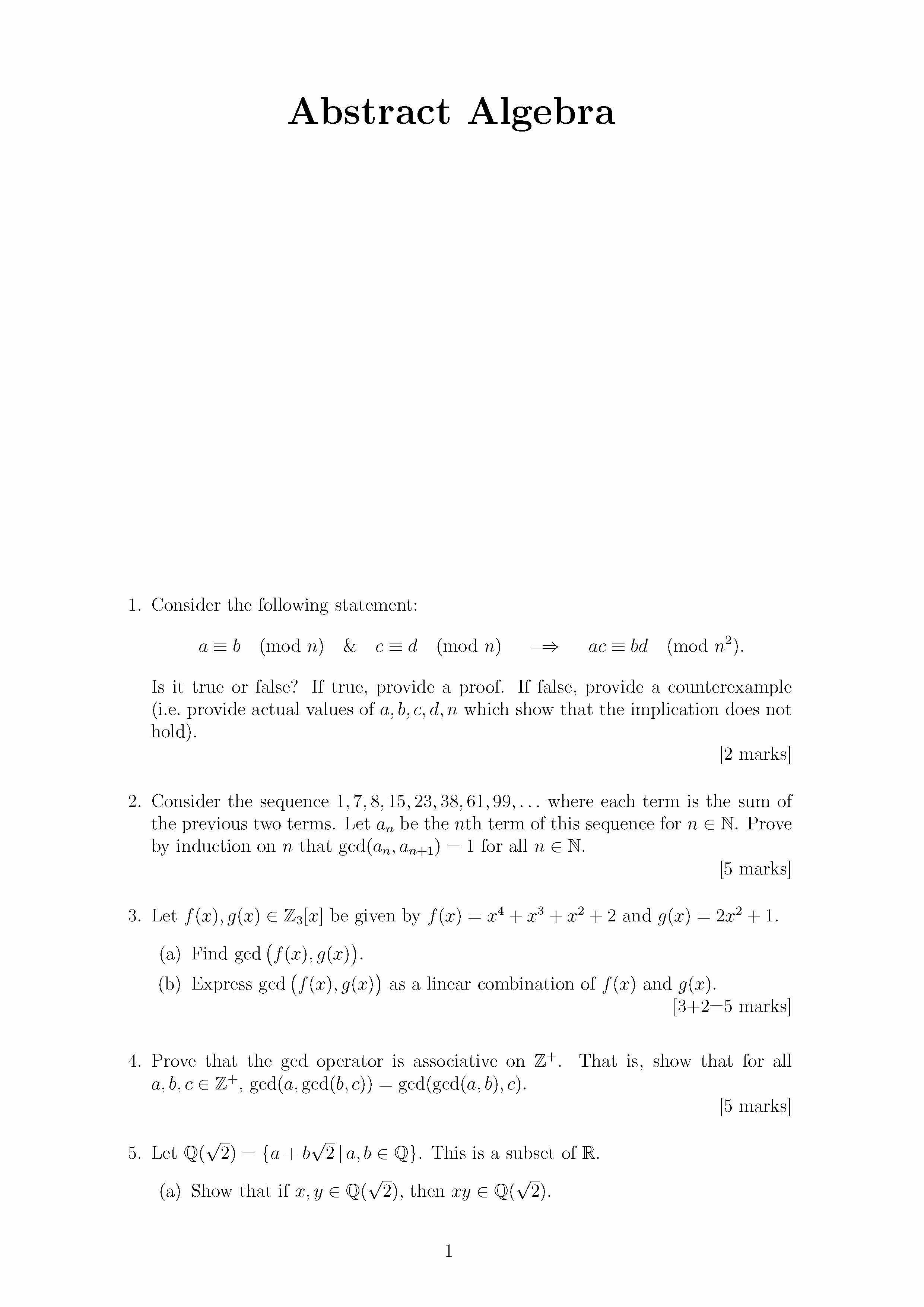 Abstract Algebra Assignment 1. Consider the following statement ...