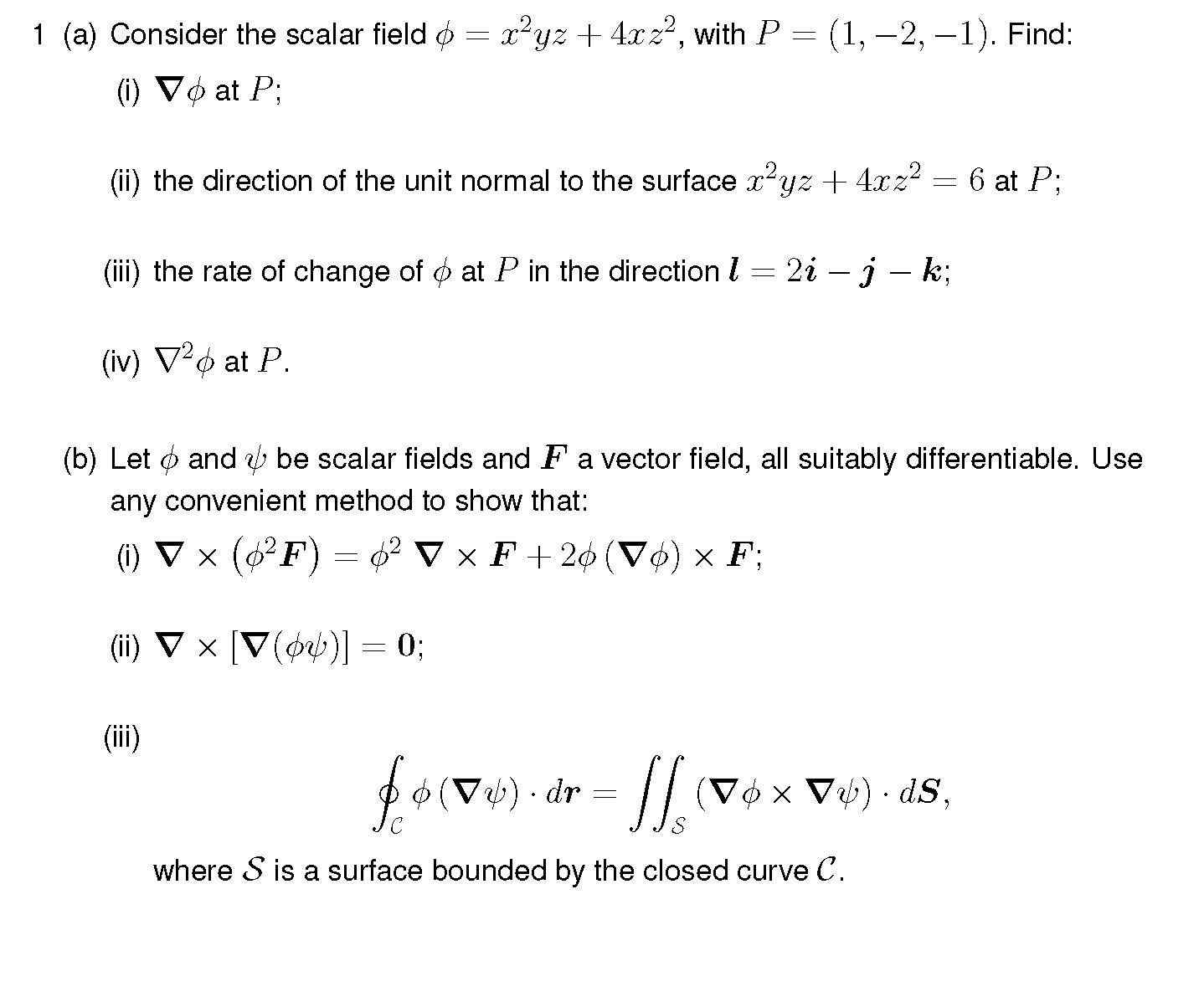 1 (a) Consider the scalar field = x yz + 4xz , with P = (1, 2, 1)....
