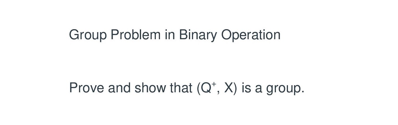 Group Problem in Binary Operation Prove and show that (Q+, X) is a...