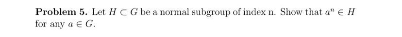 Problem 5. Let HC G be a normal subgroup of index n. Show that a&qu...