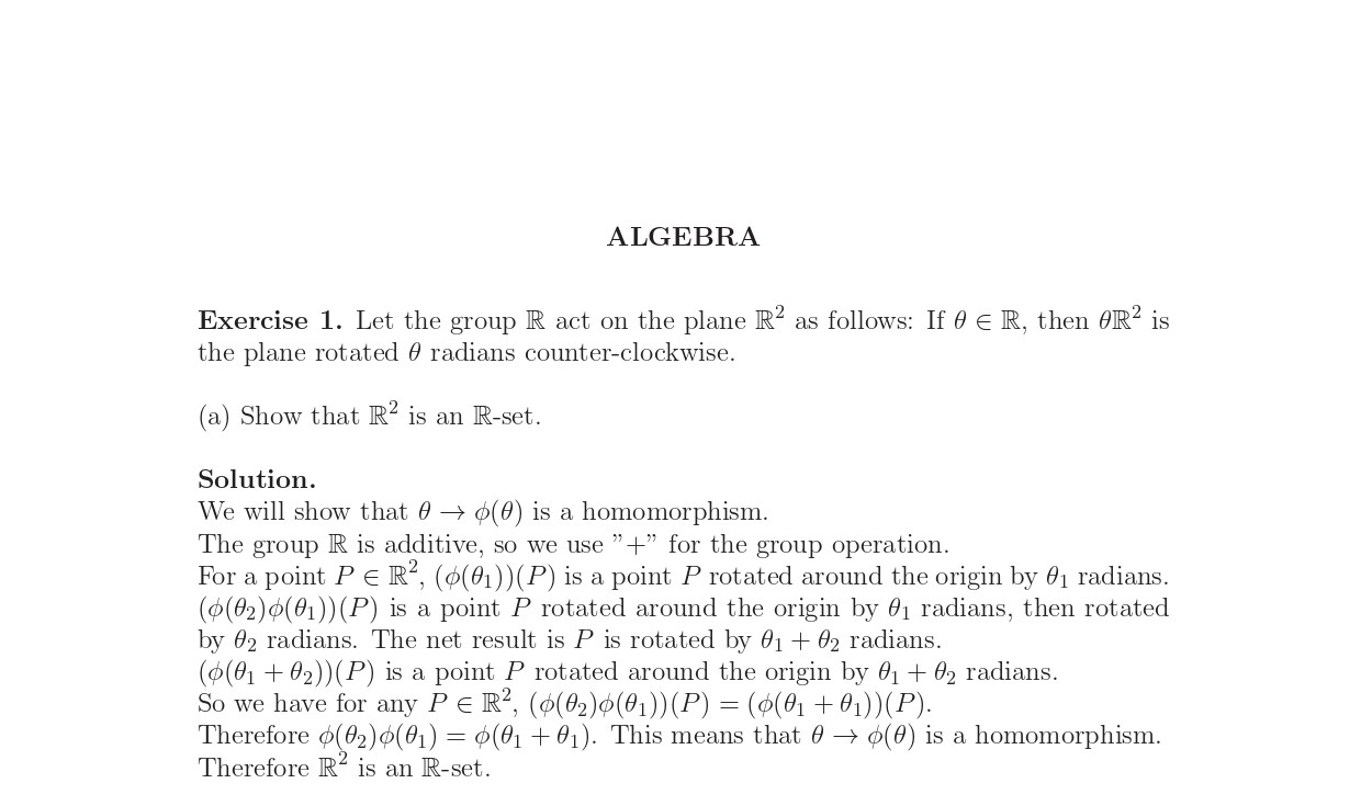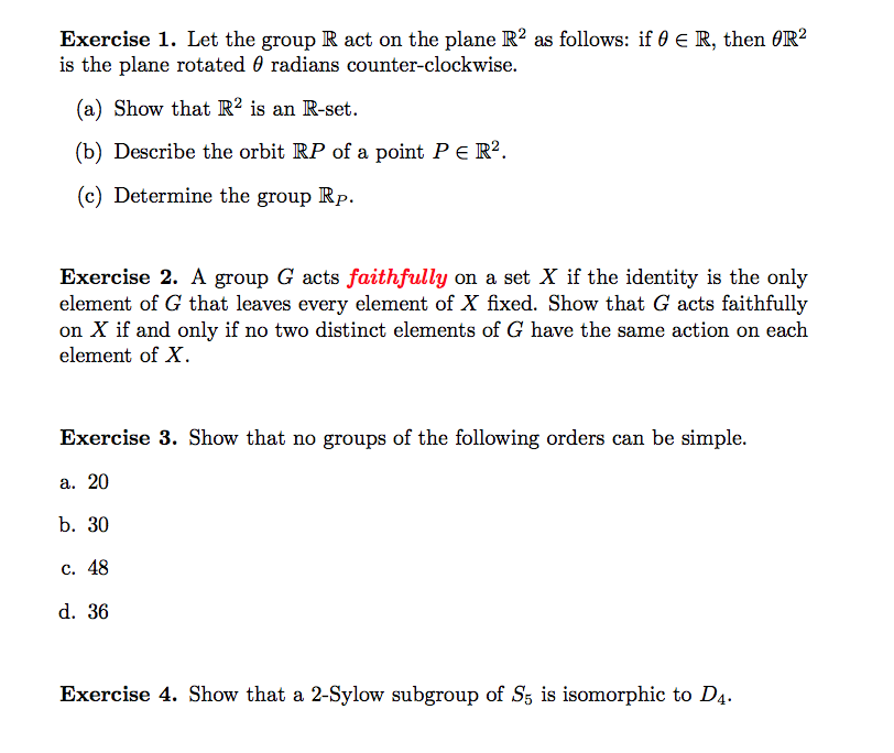 Exercise 1. Let the group R act on the plane R 2 as follows: if 0 E...