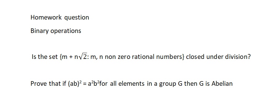 Homework question Binary operations Is the set {m + nv2: m, n non...