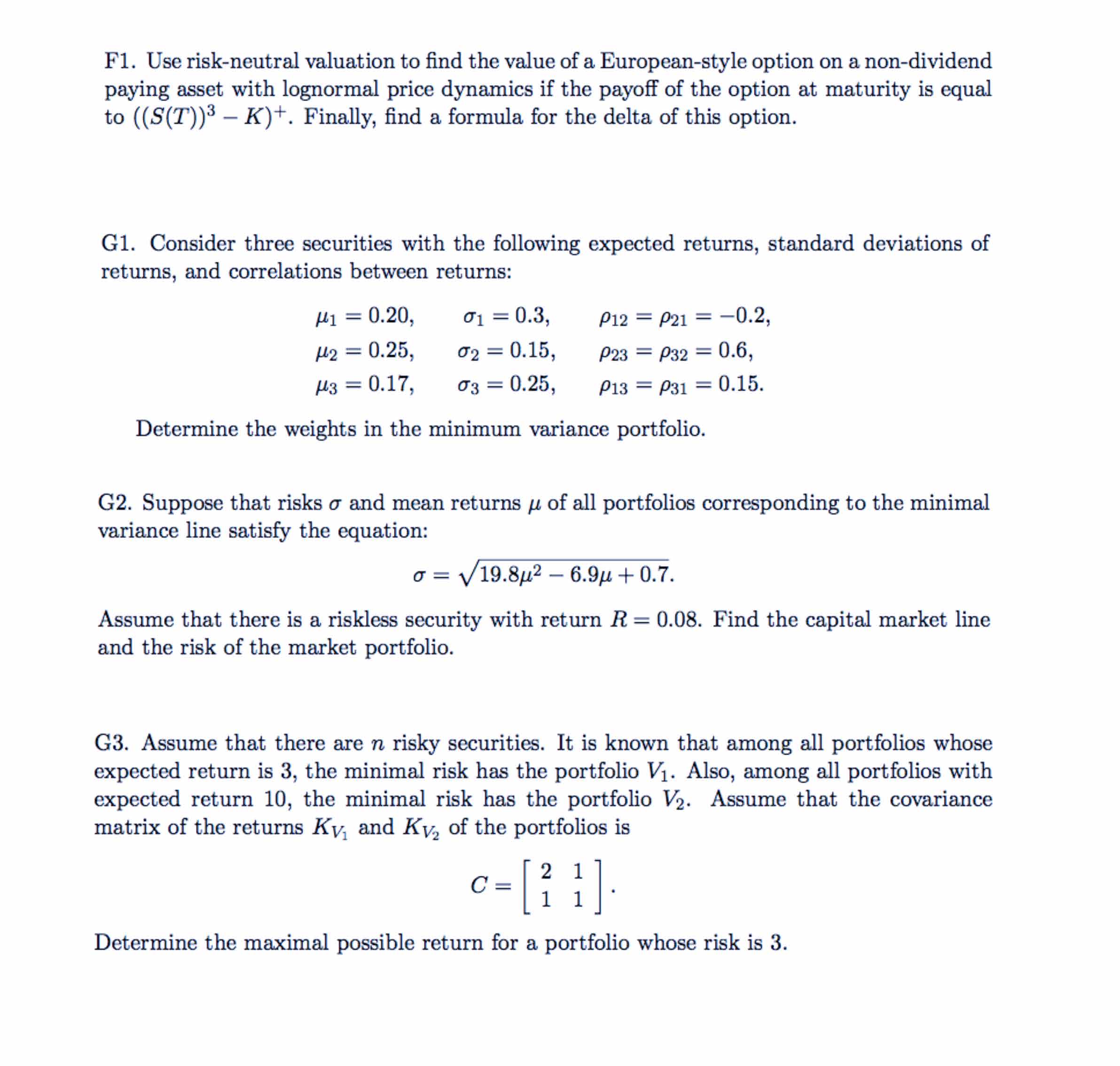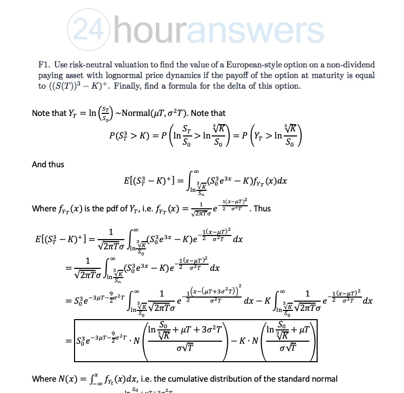 F1. Use risk-neutral valuation to find the value of European style...