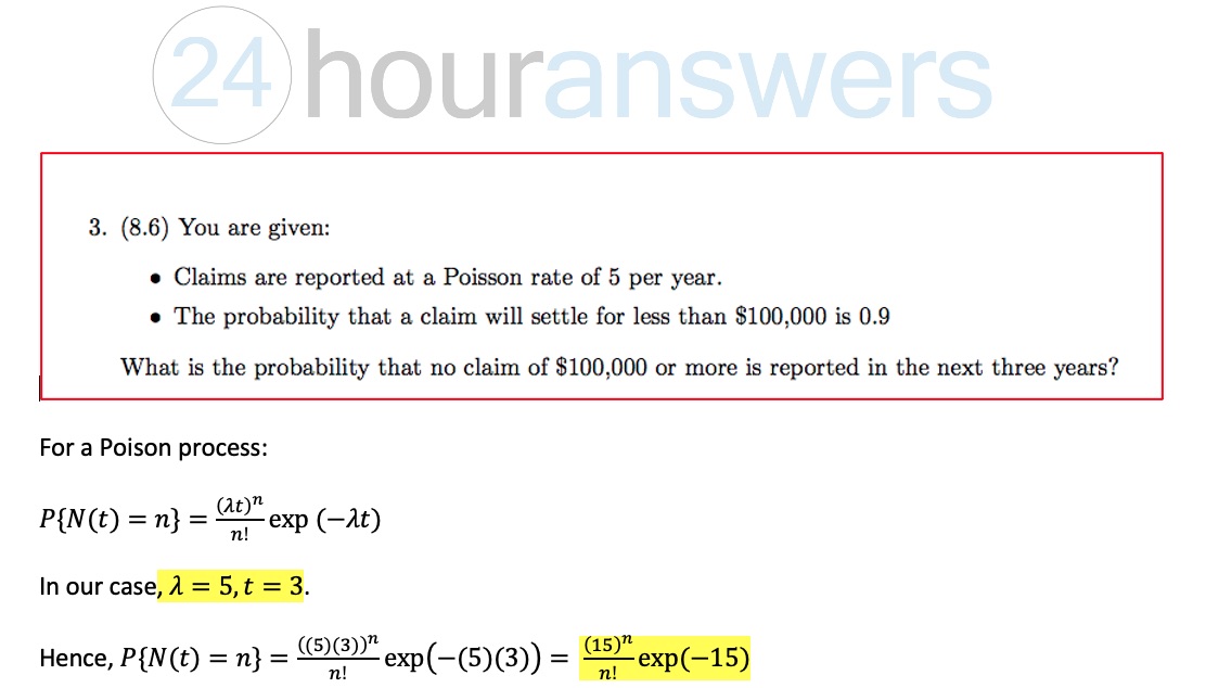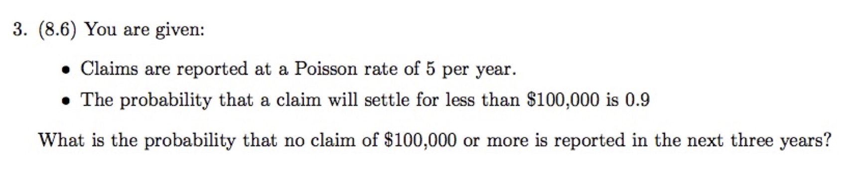 3. (8.6) You are given: Claims are reported at a Poisson rate of 5...