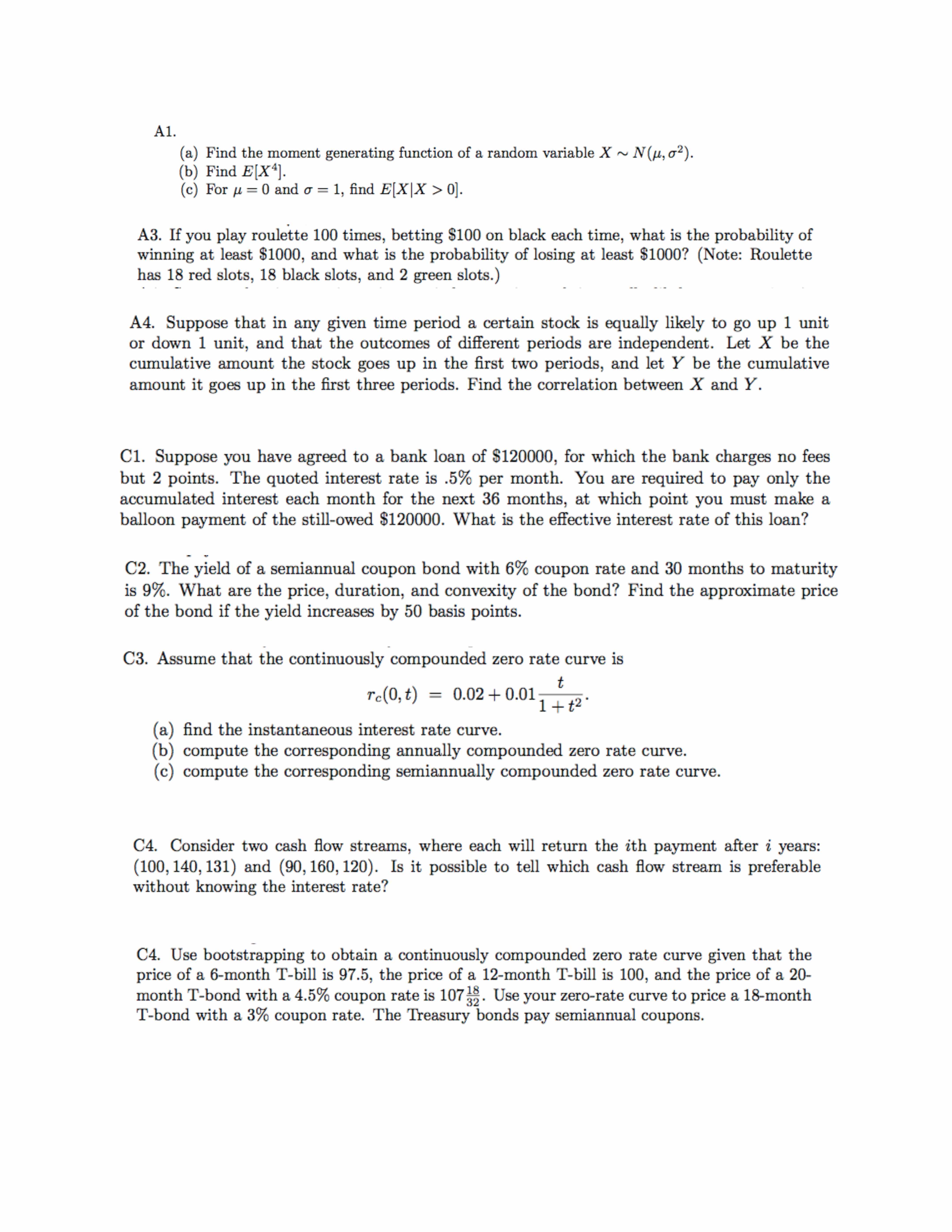 . A1. (a) Find the moment generating function of a random variable...