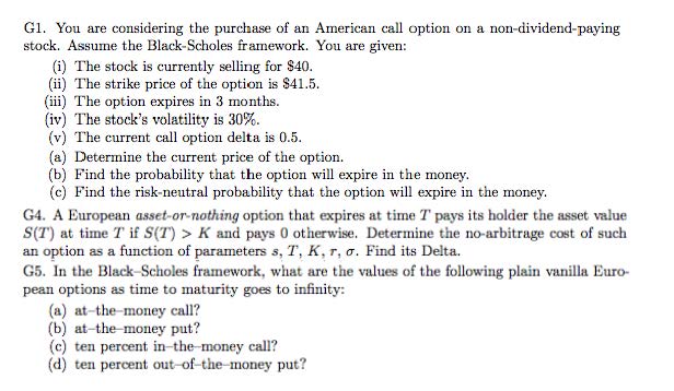 G1. You are considering the purchase of an American call option on ...