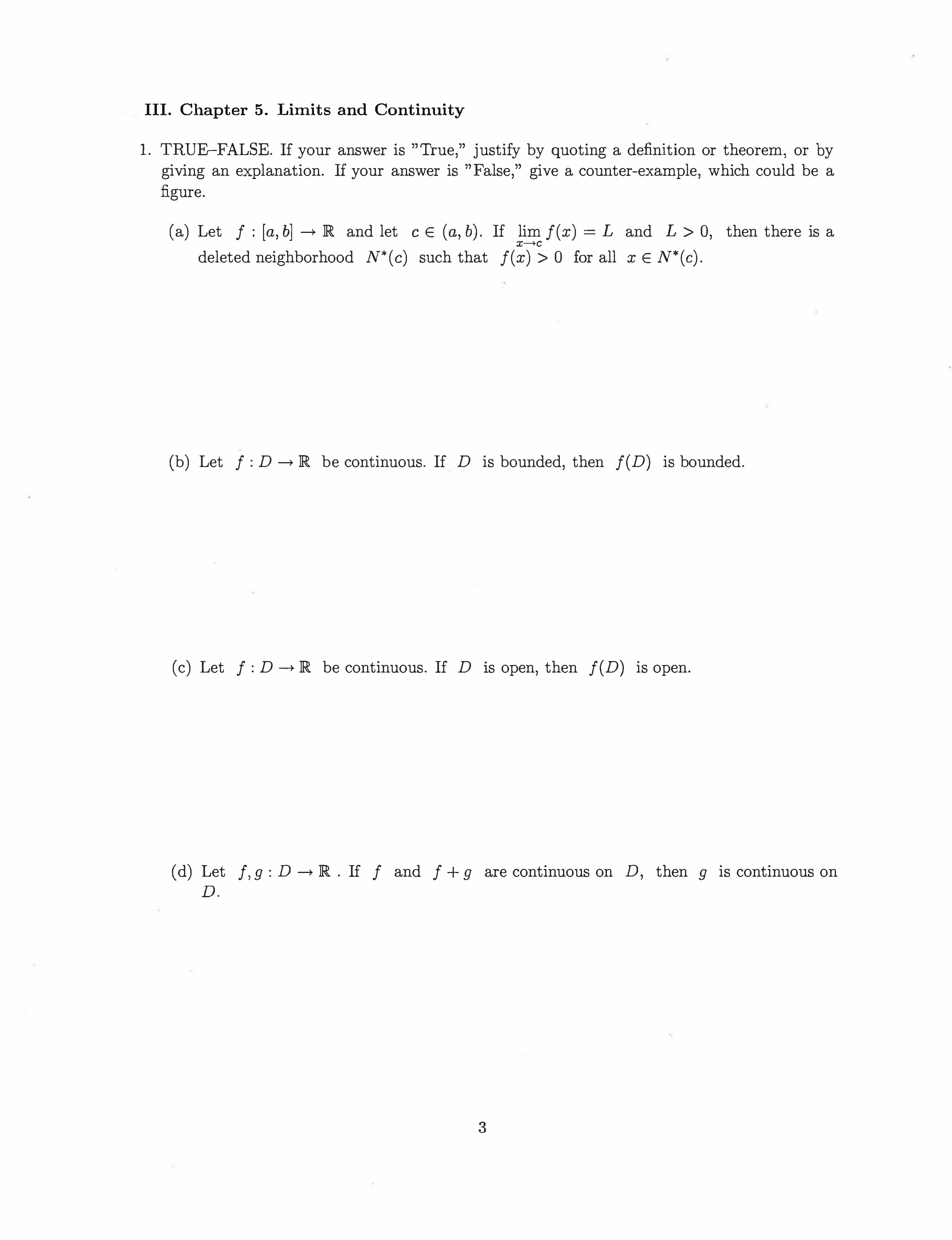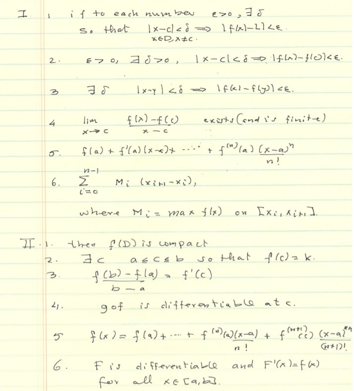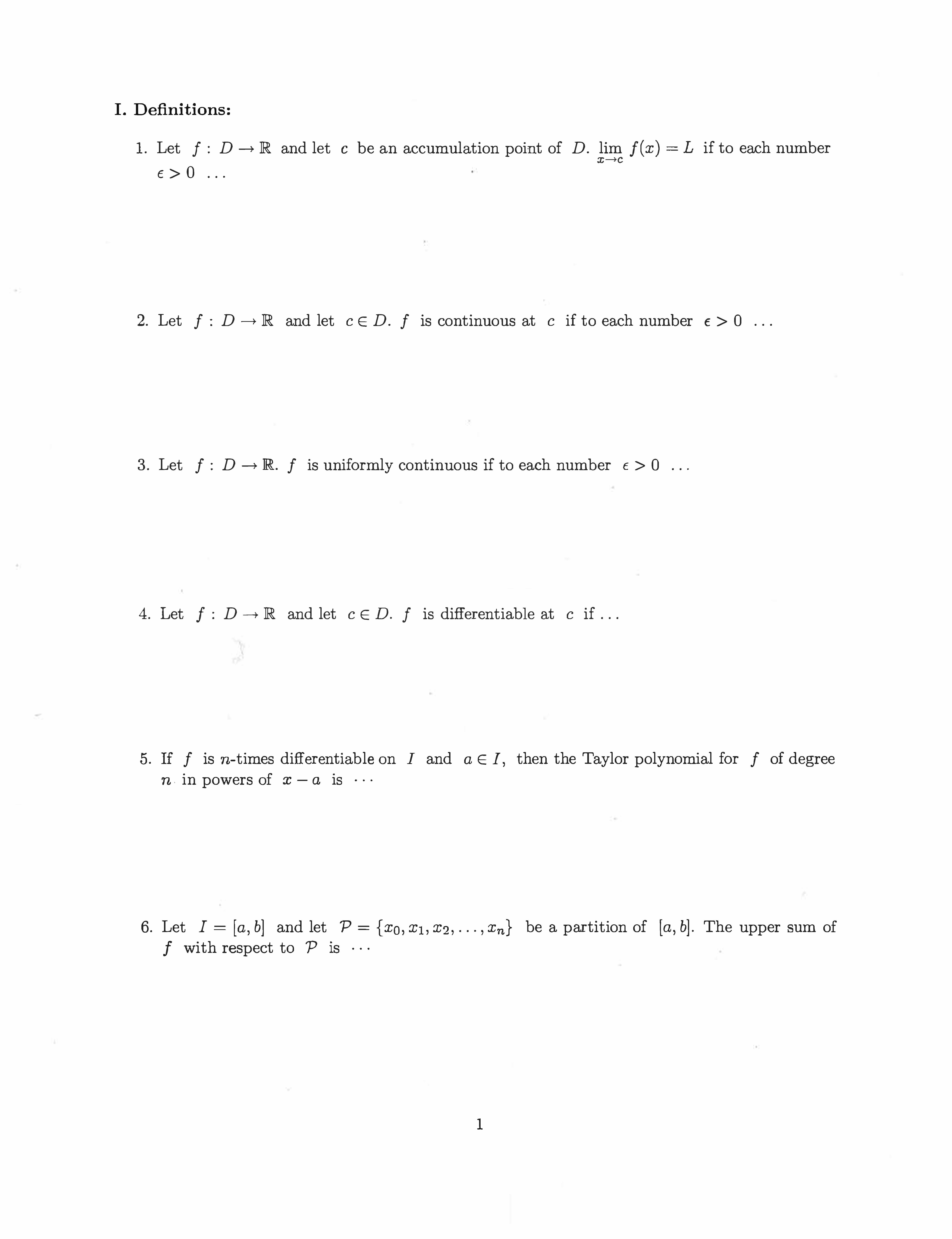 I. Definitions: 1. Let f : D - JR and let c be an accumulation poi...
