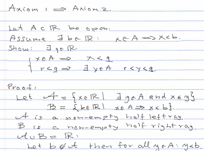 Axiom 1 If R is the union of the nonempty left ray A and the no...