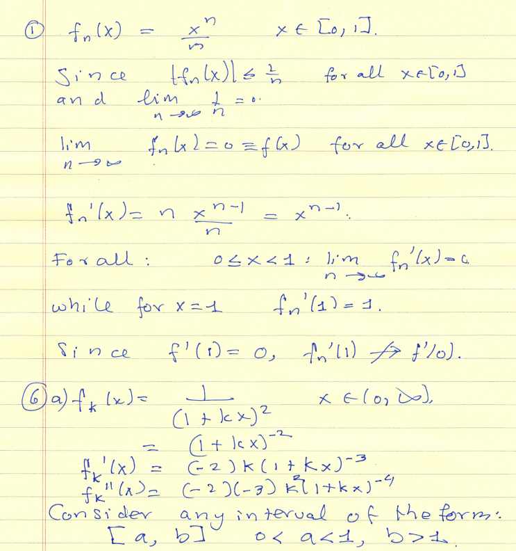 1. For n ∈ N, set fn(x) = x n/n, x ∈ [0, 1]. Prove that ...