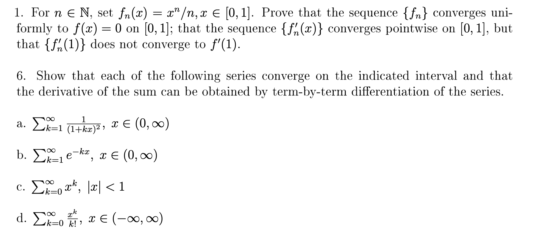 1. For n ∈ N, set fn(x) = x n/n, x ∈ [0, 1]. Prove that the se...