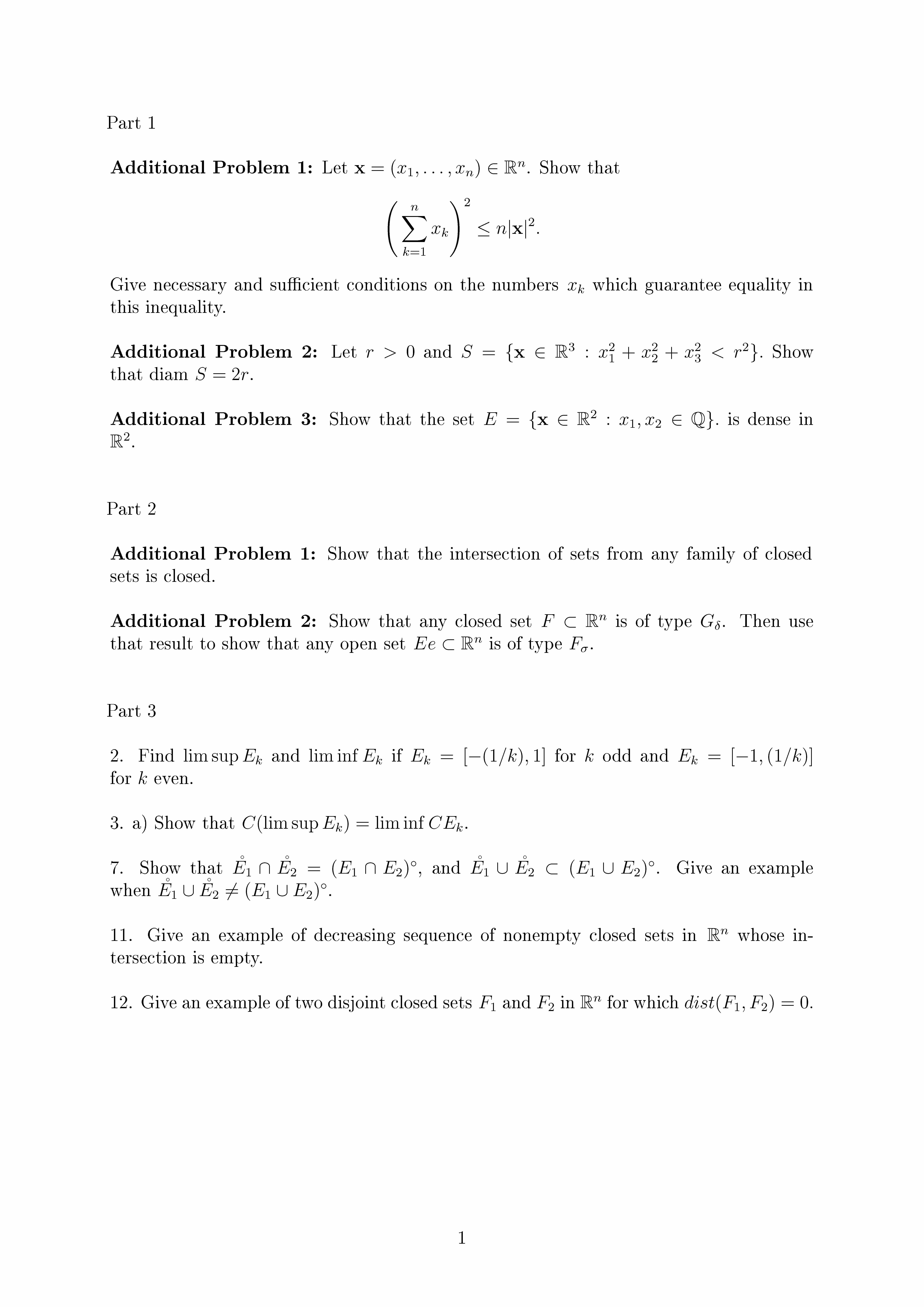 Part 1 Additional Problem 1: Let x = (x1, . . . , xn) ∈ R n ....