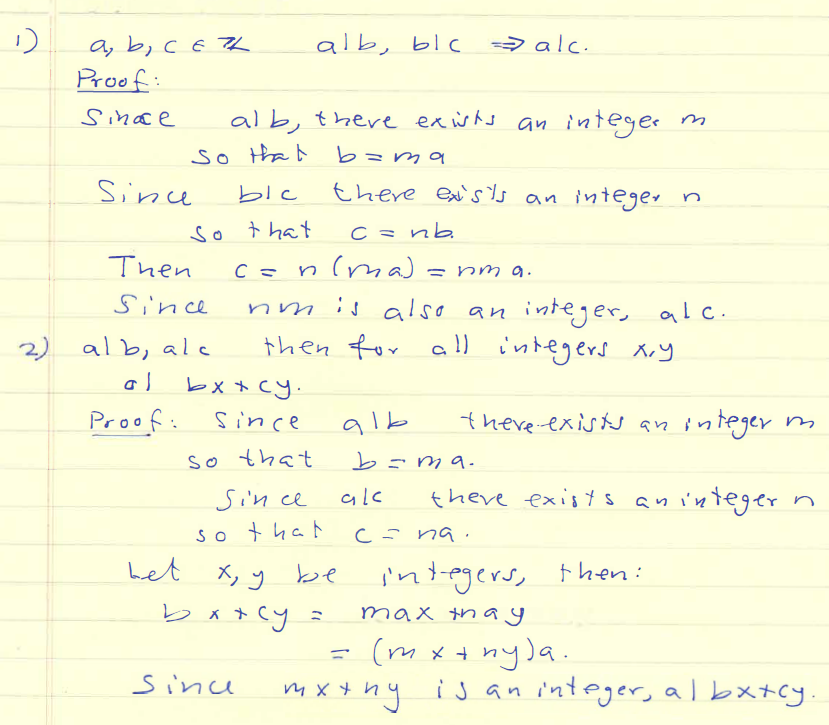 Prove the following: 1. Let a, b and c be integers. Prove if a|b a...